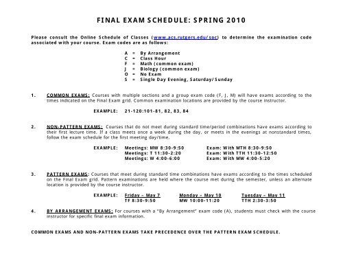 Final Exam Schedule Academic Scheduling At Rutgers Newark