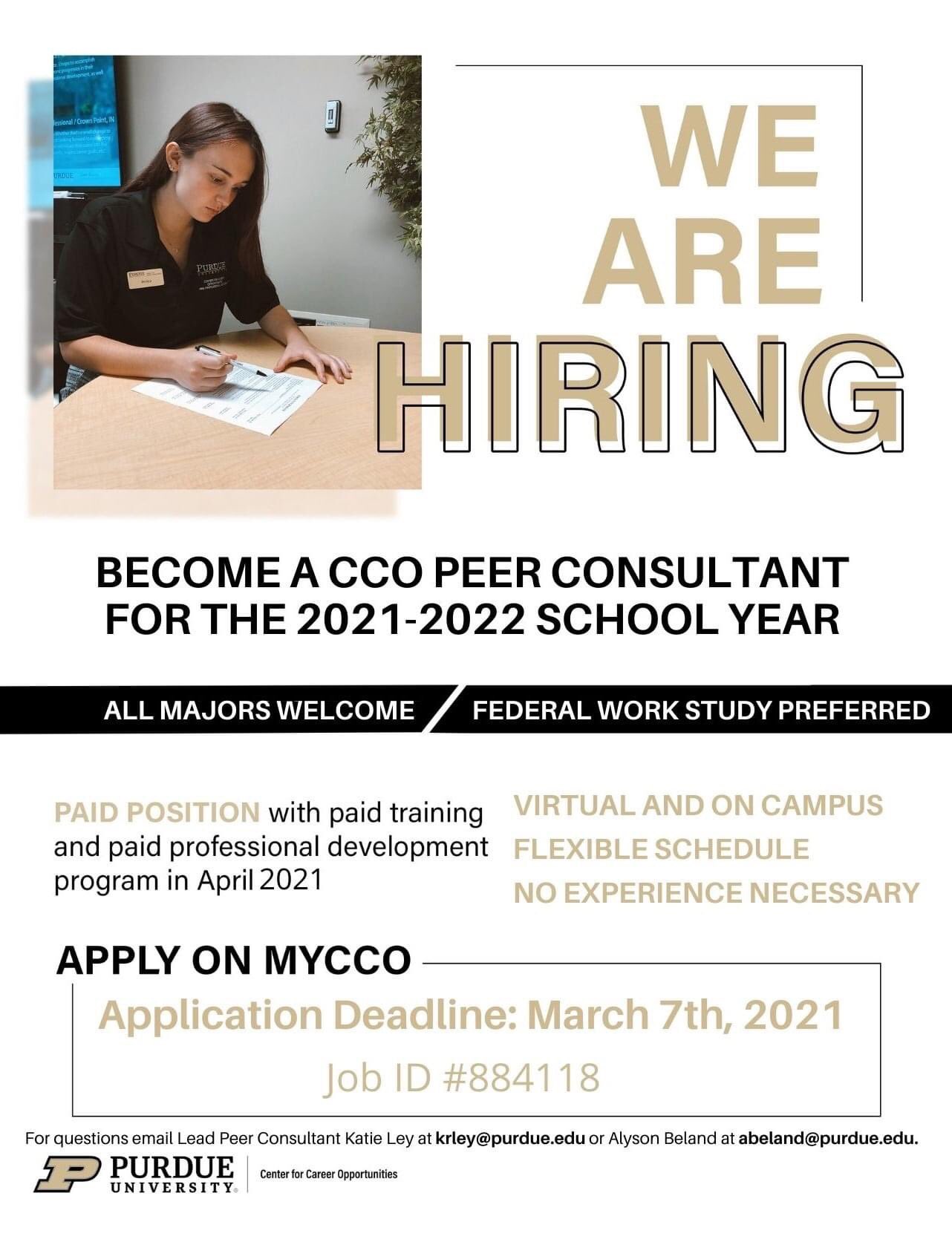 Purdue Lcc On Twitter The Cco Is Recruiting Peer Consultants For The Coming Academic Year To Apply Submit Your Resume And Cover Letter On Mycco Search Job Id 884118 Submit By 5pm