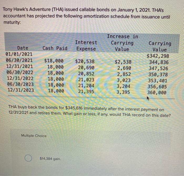 Tony Hawk S Adventure Tha Issued Callable Bonds On Chegg Com
