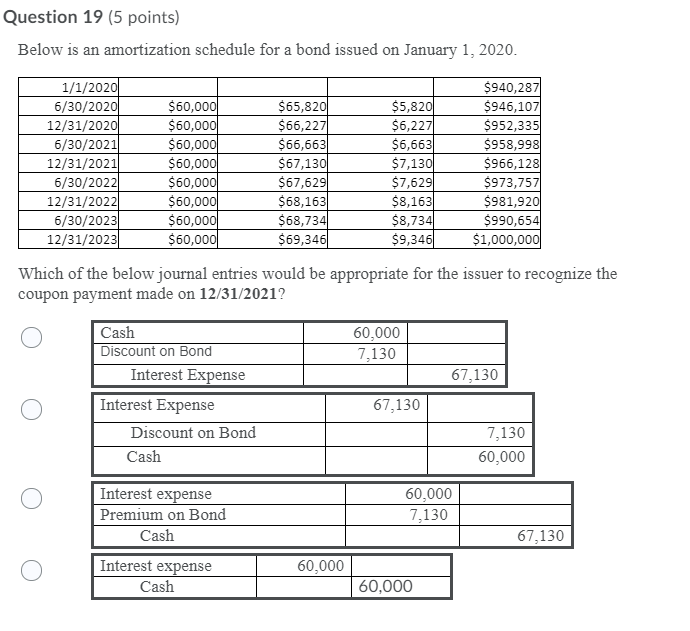 Question 19 5 Points Below Is An Amortization Chegg Com